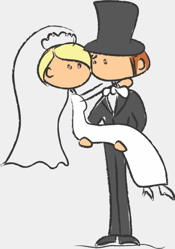 Cartoon Wedding Groom Bride Hug 2