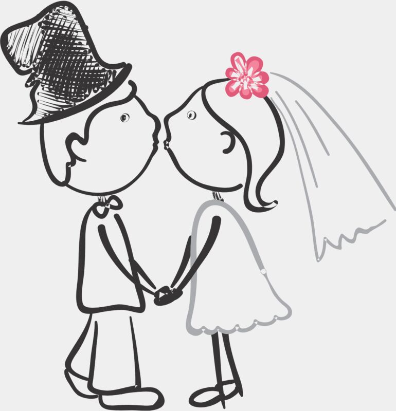 Cartoon Wedding Groom Bride Kiss 4