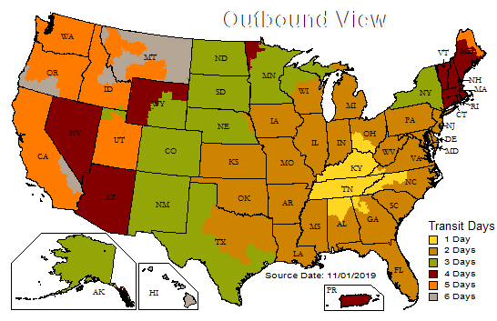 Check your delivery time based on the UPS map. All orders shipping to Tennessee residents and surrounding areas will arrive in one day via UPS ground.